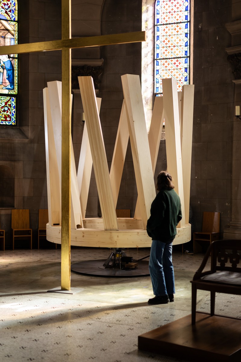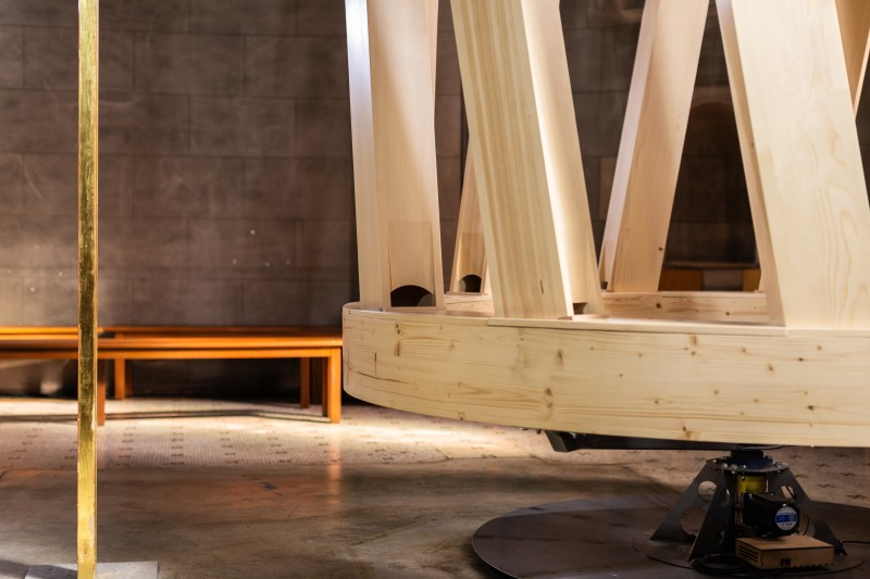 As Low As Possible est constituée de 11 tuyaux d’orgue de sous basse en bois d’épicéa, spécialement confectionnés pour l’installation. Ceux-ci sont montés sur une couronne et l’ensemble est mis en lente rotation par un moteur.