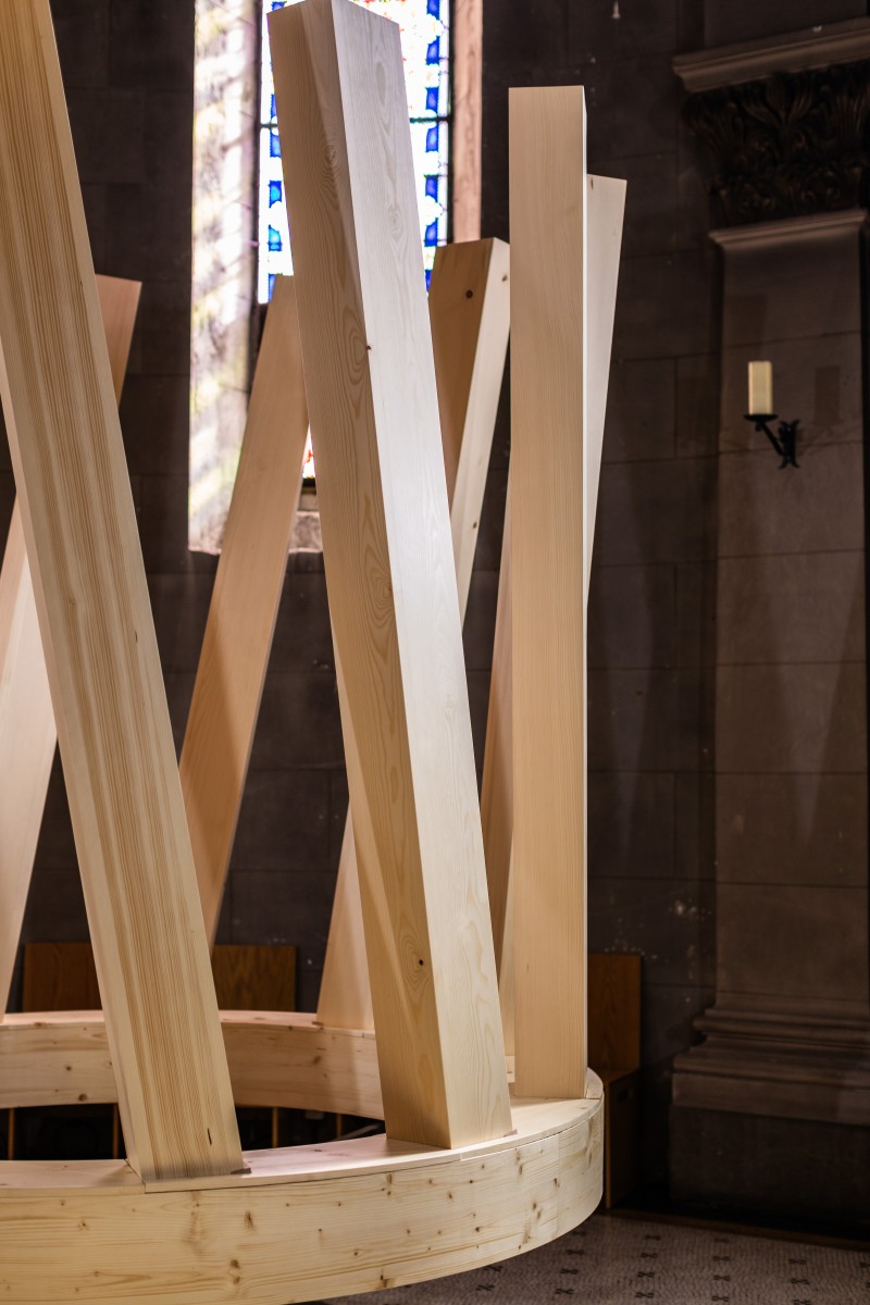 As Low As Possible est constituée de 11 tuyaux d’orgue de sous basse en bois d’épicéa, spécialement confectionnés pour l’installation. Ceux-ci sont montés sur une couronne et l’ensemble est mis en lente rotation par un moteur.